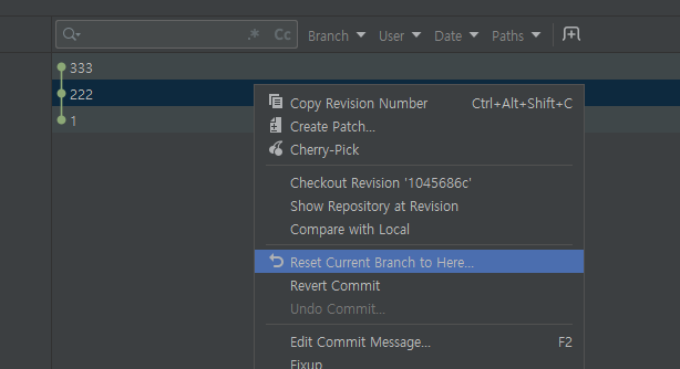 사라졌던 333 commit으로 다시 돌아간것을 확인할수 있습니다.