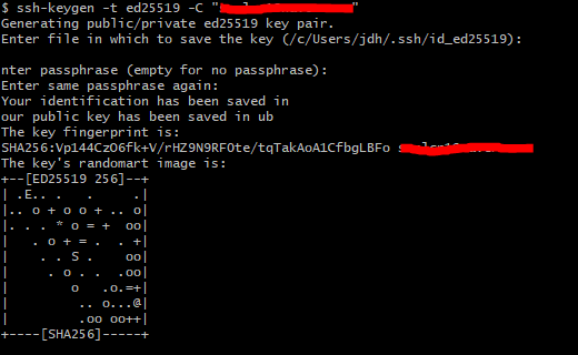 - -t 옵션을 통해서 rsa, dsa, ECDSA, EdDSA 등 옵션이 올수 있다. 여기서는 ed25519 키 암호화 방식을 이용합니다.