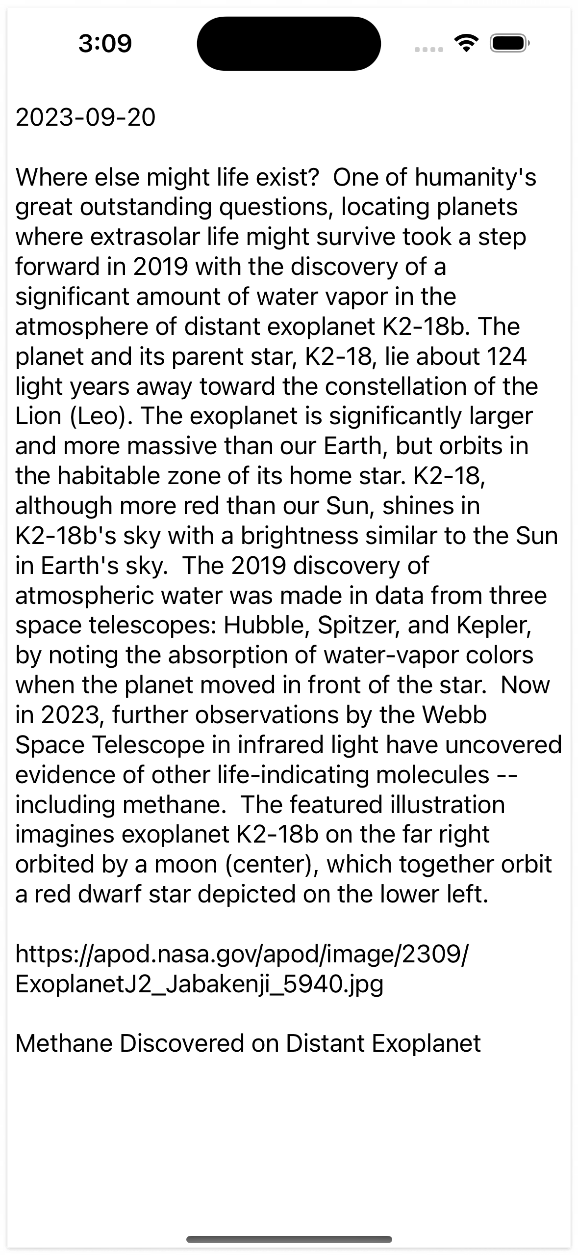 self.label_contecn.text = "\(String(describing: spac.date!))\n\n\(String(describing: spac.explanation!))\n\n\(String(describing: spac.hdurl!))\n\n\(String(describing: spac.title!))"