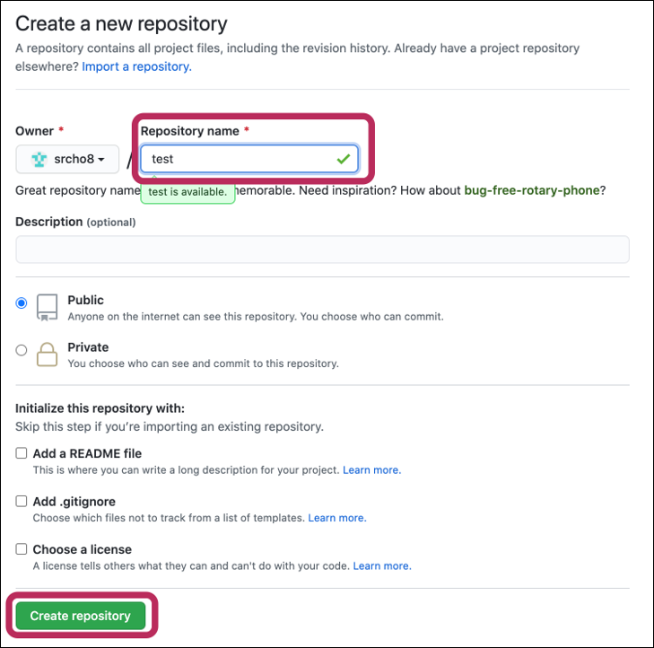 이제 github에서 Repository를 만든다. 자신이 버전 관리할 폴더를 서버에 만든다고 생각하면 된다.