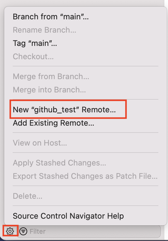 왼쪽 하단부분에 톱니바퀴를 클릭후 New ~~ Remote를 클릭하여 remote에 repository를 생성한다.