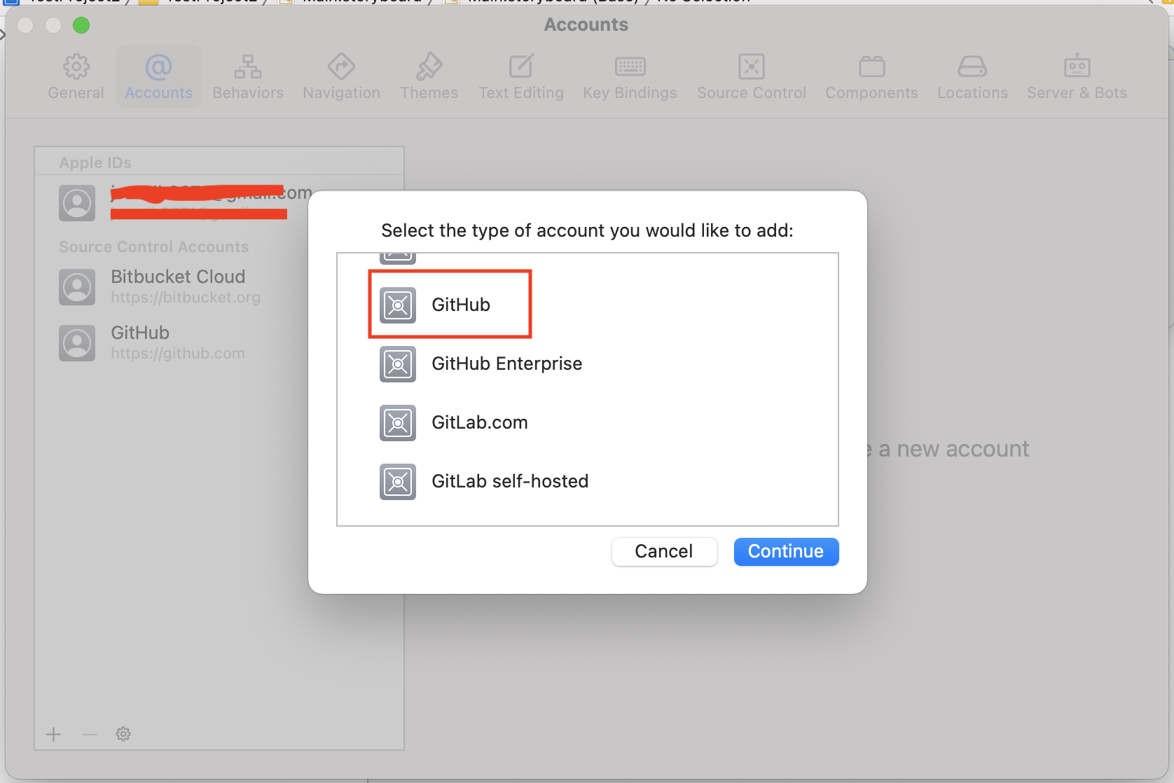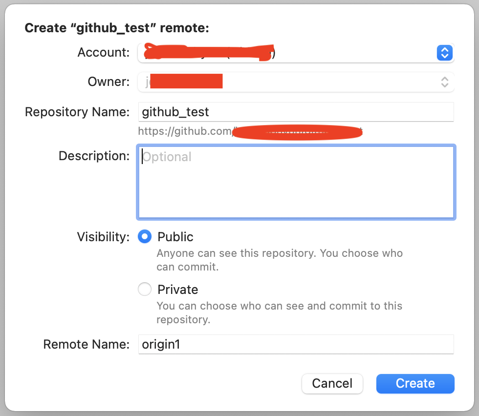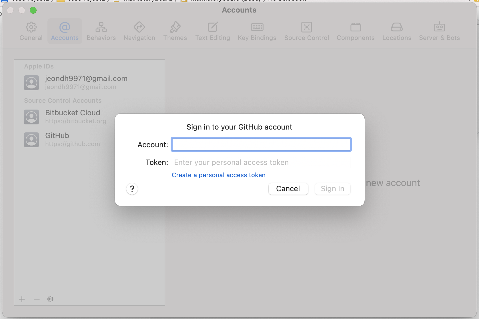 access tokens을 입력후 연동이 완료 되었으면 xcode를 통해 remote(github)에 repository를 만들어 보자.