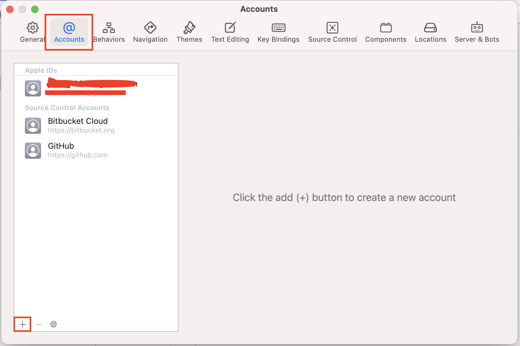Accounts탭에서 왼쪽 하단의 + 클릭한다.