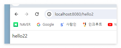 Application.class를 실행해주고 브라우저에서 localhost:8080/hello2 주소를 접속합니다.