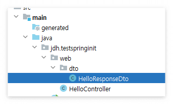 자 그럼 HelloController에도 새로 만든 ResponseDto를 사용해 보겠습니다.